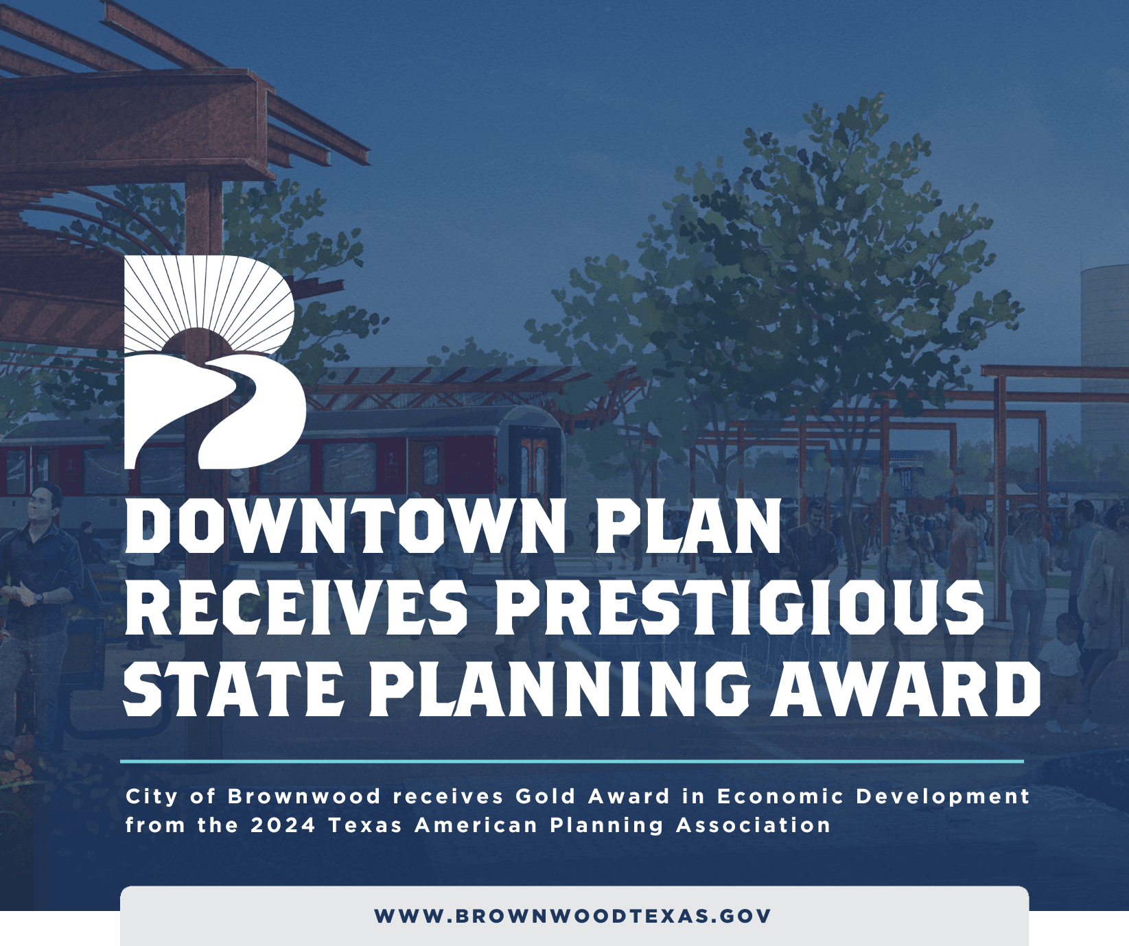 Brownwood, TX (November 4, 2024) – The City of Brownwood Downtown Plan has been recognized with the Gold Award in the Economic Development Planning category of the 2024 Texas Planning Awards, presented by the American Planning Association (APA) Texas Chapter.